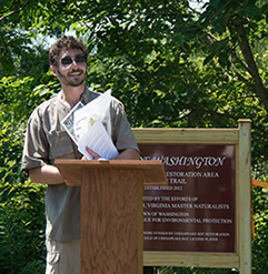 People and Pollinators Enjoy Town Habitatsby Beverly Hunter Bees and butterflies flitted about on cue on blossoms of native perennials and shrubs, as over 100 people gathered to learn in the Natural Habitats, Nature Trail, and Avon Hall pond restoration. The opening ceremony on Friday June 27 at the entrance to Leggett Lane was officiated by Mayor John Sullivan, and included speakers from the volunteer-based organizations that are creating the native-plant habitats, trails, and pond restoration: Old Rag Master Naturalists, RappFLOW, RLEP.