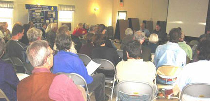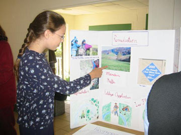 | Hearthstone school students explain their study of the topography surrounding the Thornton River at the RappFLOW public education forum on erosion. (Photo by Bev Hunter). |