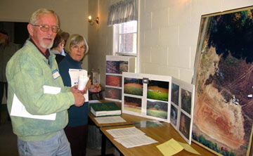 | RappFLOW participants Robert Wall and Inta Sraders study erosion exhibit prepared by Paul Komar of RLEP. (Photo by Bev Hunter) |