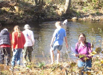 | Hearthstone school seventh graders and their teacher Jill Keihn study erosion patterns and streamside vegetation on the Thornton River in preparation for their presentation at the RappFLOW erosion event. |