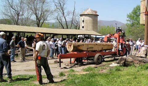 Chris Byrd demonstrates his portable sawmill at the RappFLOW forum on