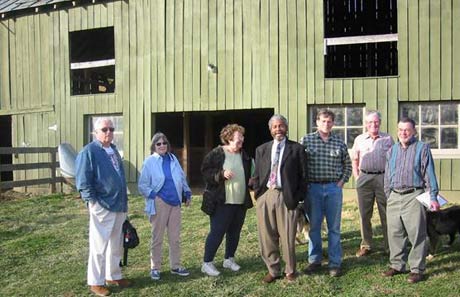 RappFLOW organizers getting ready for the sustainable forestry event in the big green barn at Mt. Vernon Farm. Left to right: Jed Duval, Jill Duval, Bev Hunter, Khalil Hassan, Cliff Miller, Clyde Humphrey, Dick Biby.
