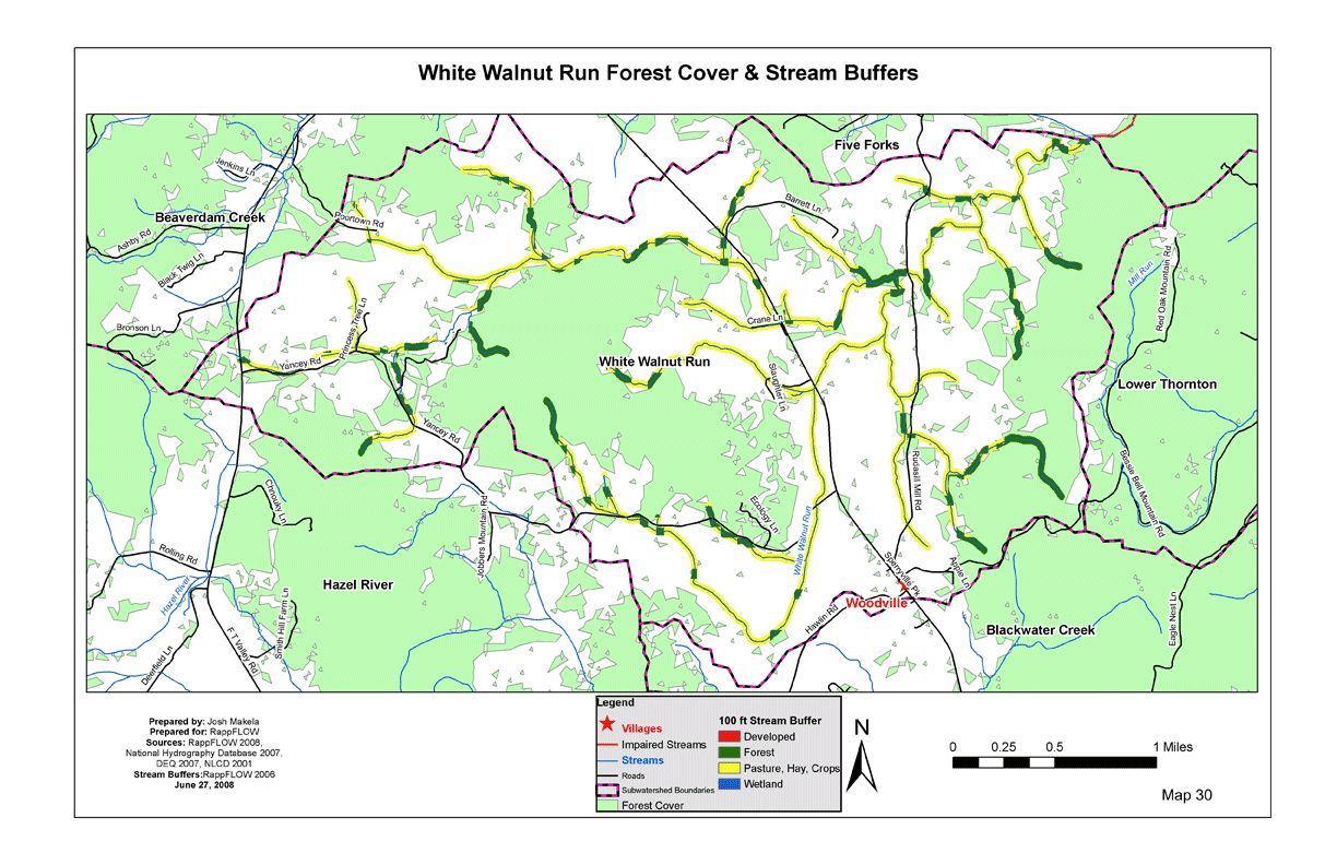 30 White Walnut Run Subwatershed Forest Cover and Stream Buffer Vegetation
